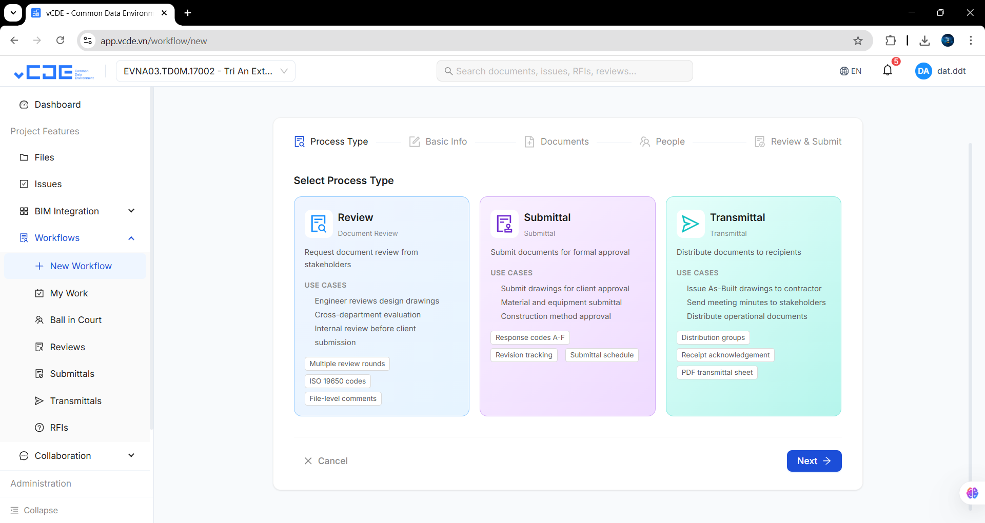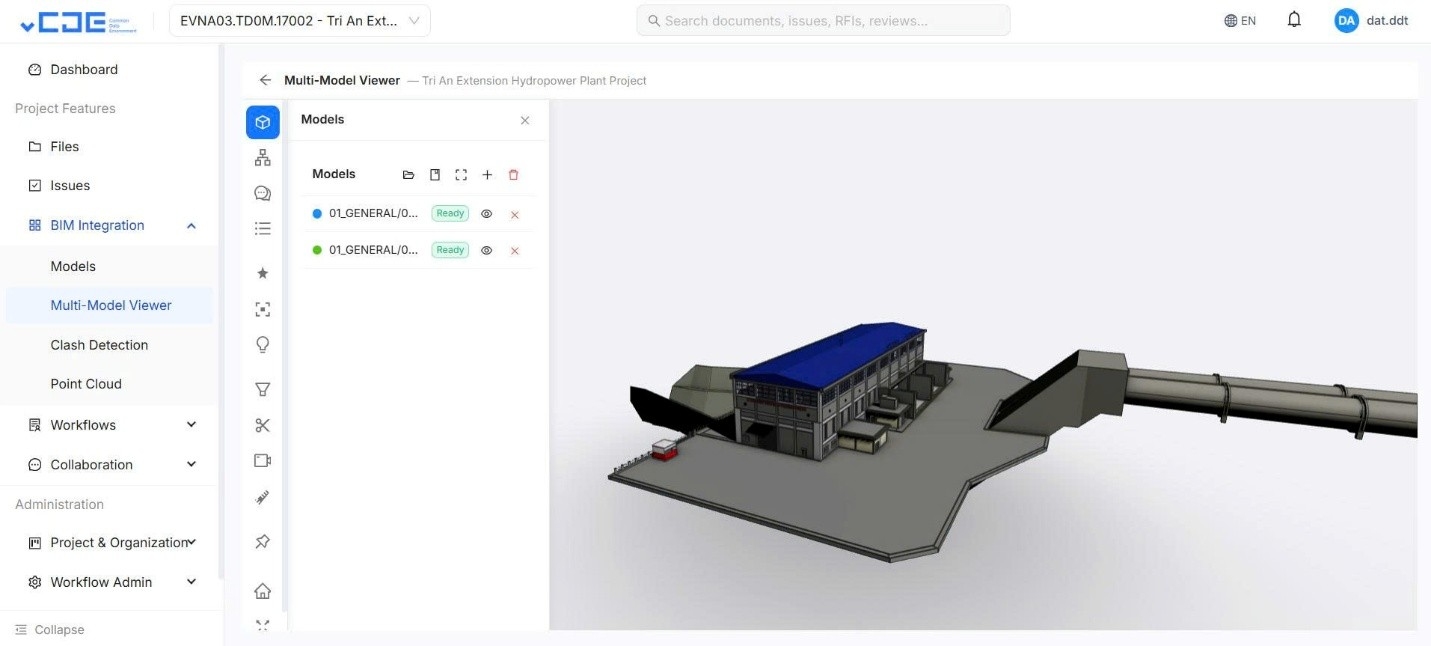 Trong thực tiễn triển khai, dự án quy tụ nhiều chủ thể như Ban Quản lý dự án, tư vấn thiết kế, tư vấn giám sát, tư vấn thẩm tra, nhà thầu thi công và các nhà cung cấp thiết bị. Việc cùng làm việc trên một nền tảng dữ liệu chung giúp đồng bộ thông tin, kiểm soát chặt chẽ phiên bản hồ sơ, đồng thời cho phép truy xuất dữ liệu theo thời gian thực, phục vụ hiệu quả công tác điều hành và ra quyết định.