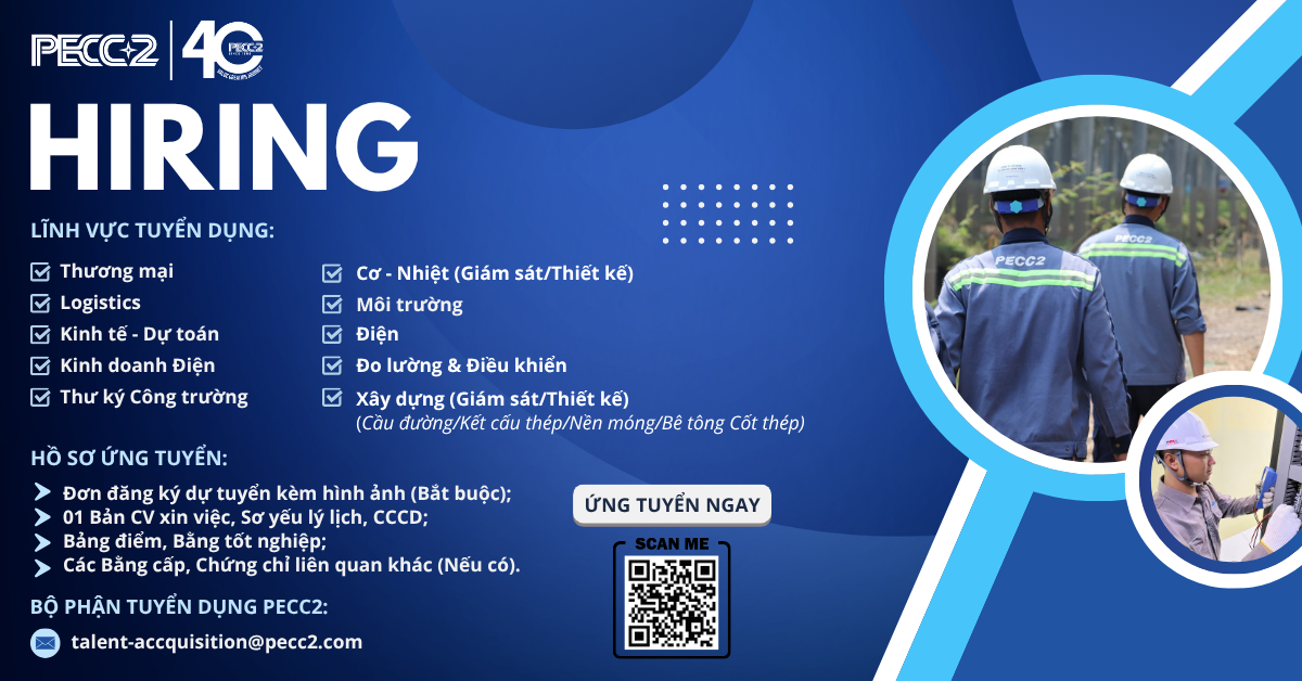 Gia nhập PECC2 – Nơi bạn có thể góp sức vào những Công trình quy mô, đồng hành cùng Đội ngũ chuyên nghiệp trong Lĩnh vực Năng lượng.